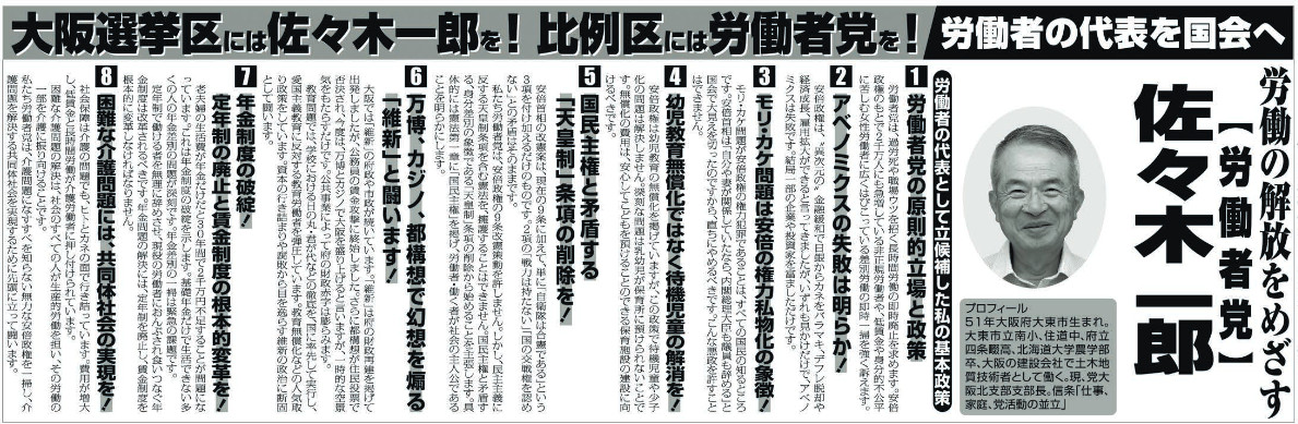 労働の解放をめざす労働者党 大阪北支部 佐々木一郎
